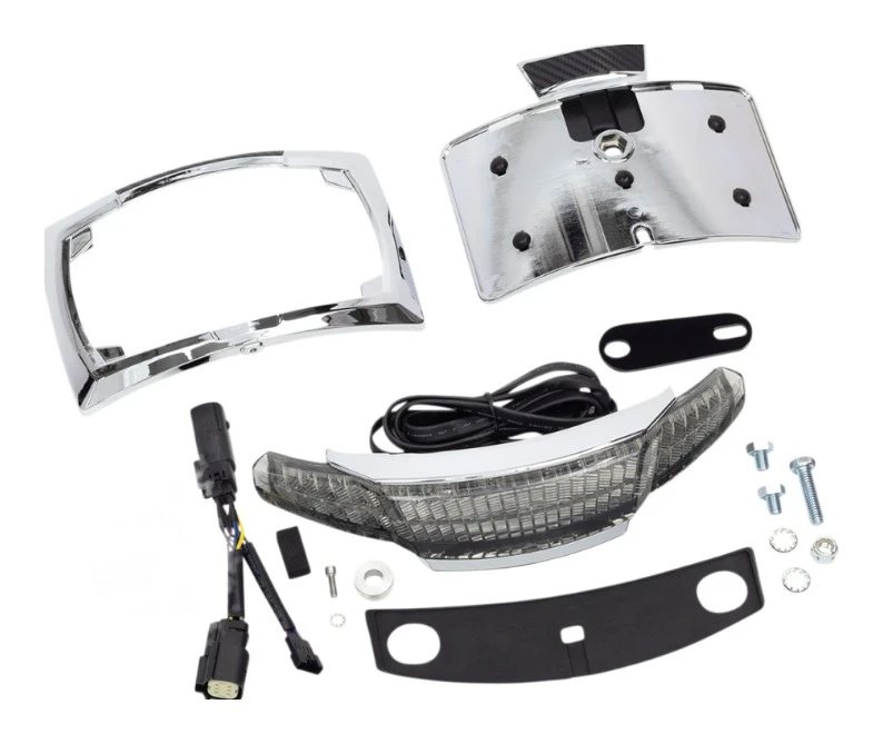 The plug and play light replaces the entire OEM lighting assembly with an LED run, turn, brake light and offers a clean way to mount the license plate without exposed hardware.
