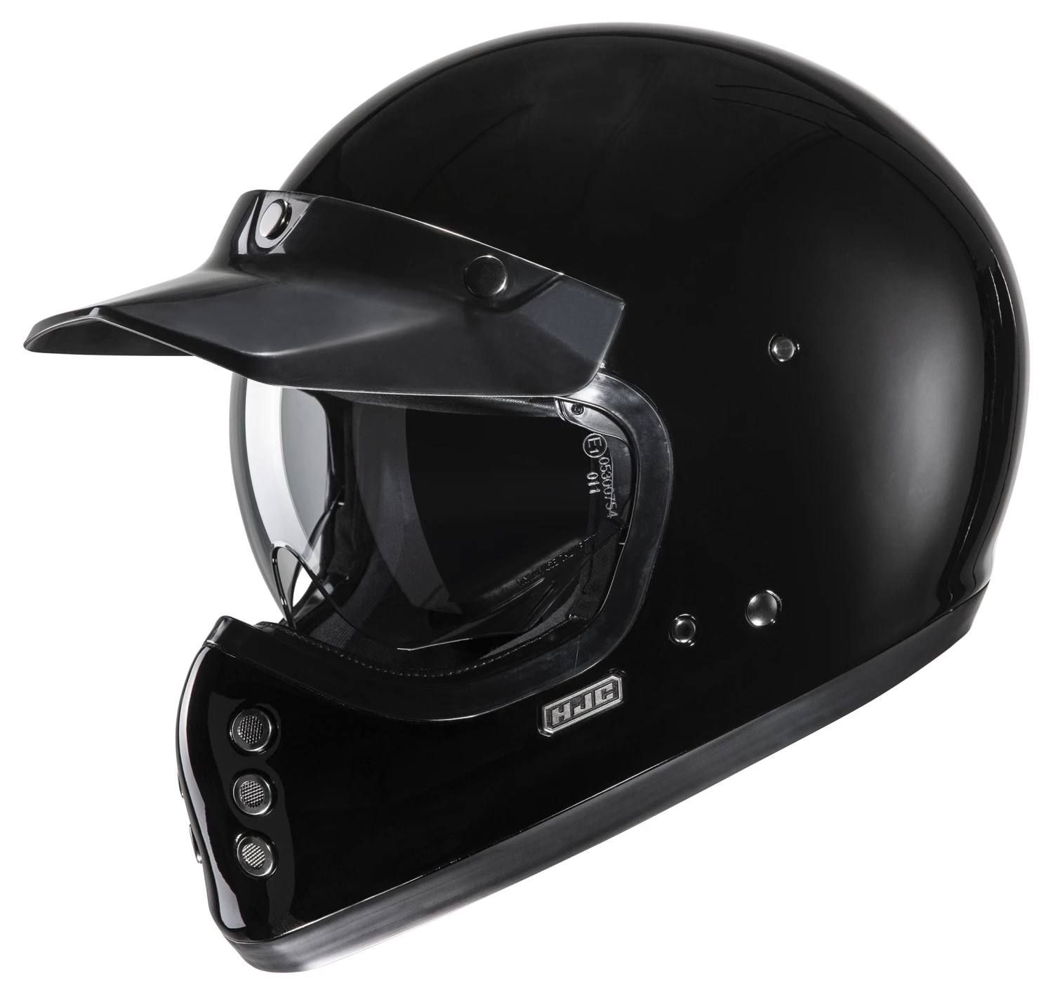 The HJC V60 Helmets are composed of an advanced fiberglass shell with a classic helmet design. This goggle and eyeglass friendly helmet also has an internal sun visor to protect riders eyes. A removable and washable crown and cheek pads allow riders to keep the interior of their helmet fresh and clean. Built in speaker pockets allow for the possibility of adding a communication device. Removable peak visor included.