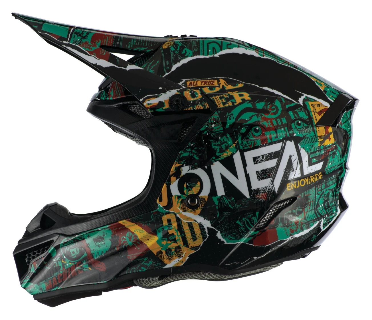 The O’Neal 5 Series Helmet is constructed using a lightweight polycarbonate/ABS shell and includes multiple air vents to help keep you cool and dry during those longer rides or hot summer Motos.