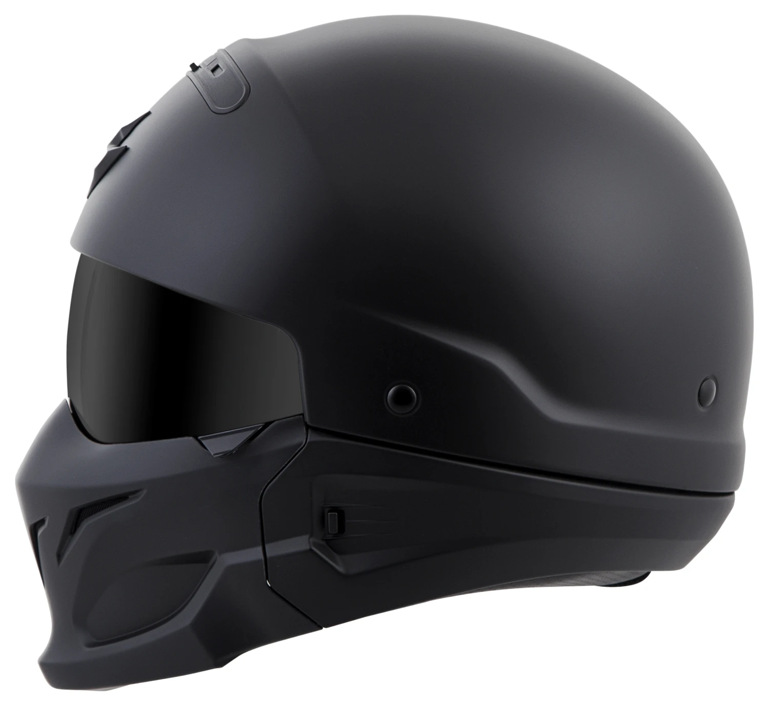 Scorpion adds a whole lot of “but wait, there’s more” to the classic half shell with the Scorpion Covert Helmet. They start off strong with a tune-able ventilation system. Next they mix in a no-frills drop down sun visor system. One pull on a tab lowers the shades then pushing the same tab retracts them; it couldn’t be easier. Snapping in a rear bottom sleeve transforms your lid into a 3/4 helmet and helps to muffle some of the cries from your lives-saving exhaust. Despite the extra coverage, Scorpion’s Kwikwick liner keeps your head in the game by channeling heat and humidity up to the ventilation ducts to be piped out the back. You’ll be cool as a cucumber. But wait, there’s more. Attaching the front mask shields your pretty face from bugs, and you-name-it debris as you’re blasting down the interstate. If you’re one who frequently needs to transition from being seen to only heard, the Scorpion Covert is there for missions ranging from the twisties to the impossible.
